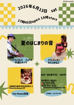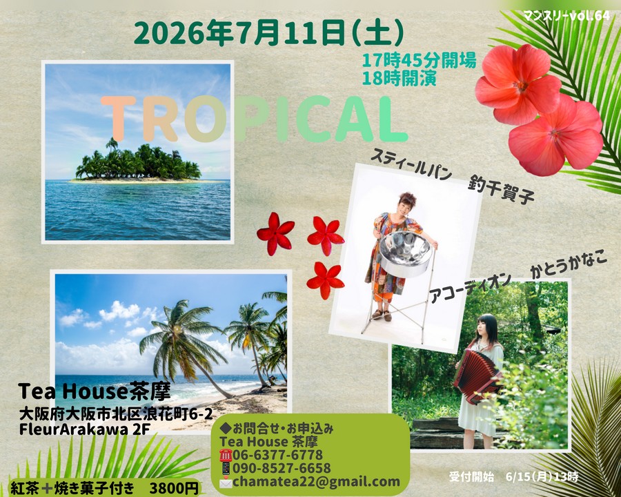| 会場 | Tea House 茶摩 大阪府大阪市北区浪花町6-2 Fleur Arakawa2F |