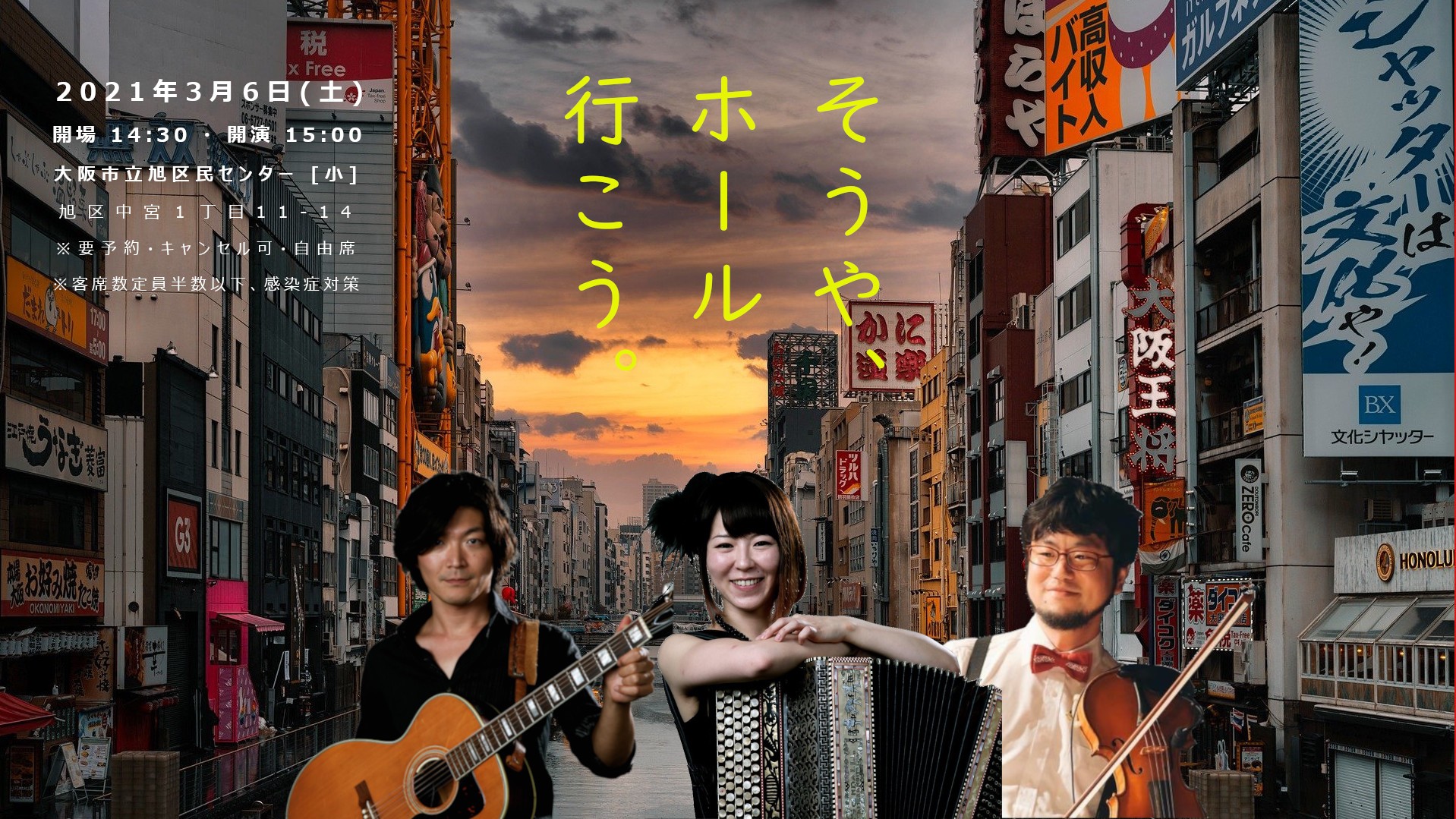 | 03/06 | 大阪 大阪市立旭区民センター 小ホール「そうや ホール、行こう。by かとうかなこ三重奏」●かとうかなこ、岡崎泰正、秦 進一FLYER |