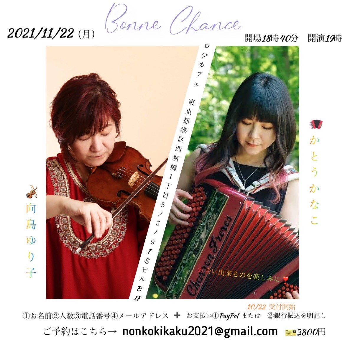 | 11/22 | 東京 ロジカフェ「Bone Chance」●かとうかなこ、向島ゆり子(ヴァイオリン)FLYER |