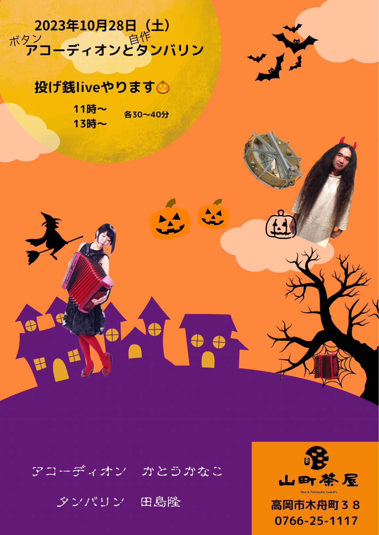 | 10/28 | 高岡 山町茶屋大阪「アコーディオンとタンバリン」●かとうかなこ、田島隆FLYER |