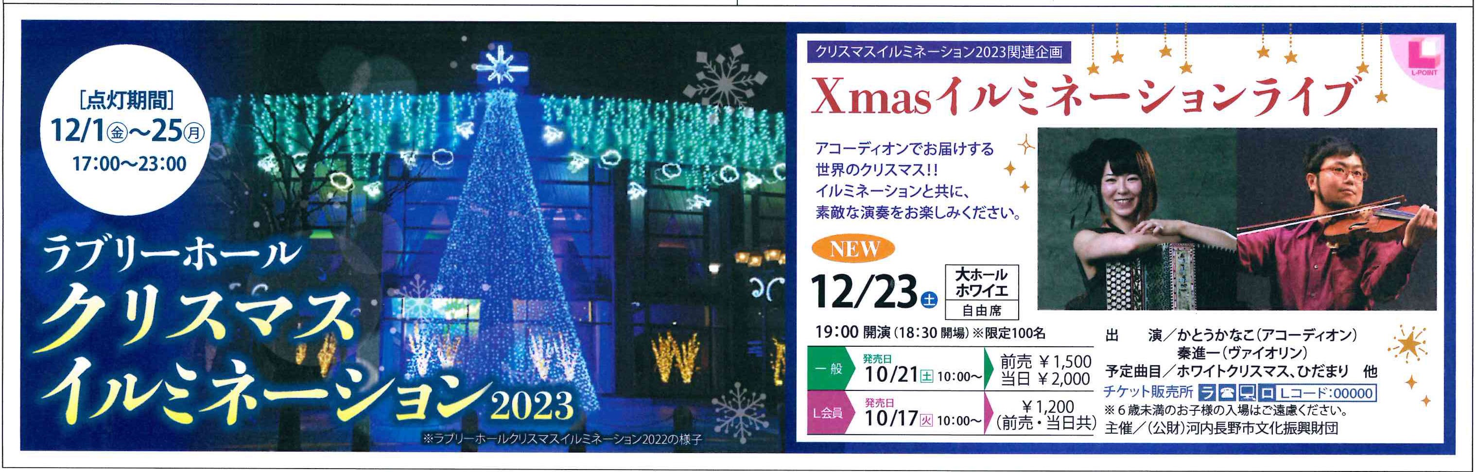 | 12/23 | 大阪 河内長野ラブリーホール「Xmasイルミネーションライブ」●かとうかなこ、秦進一FLYER |